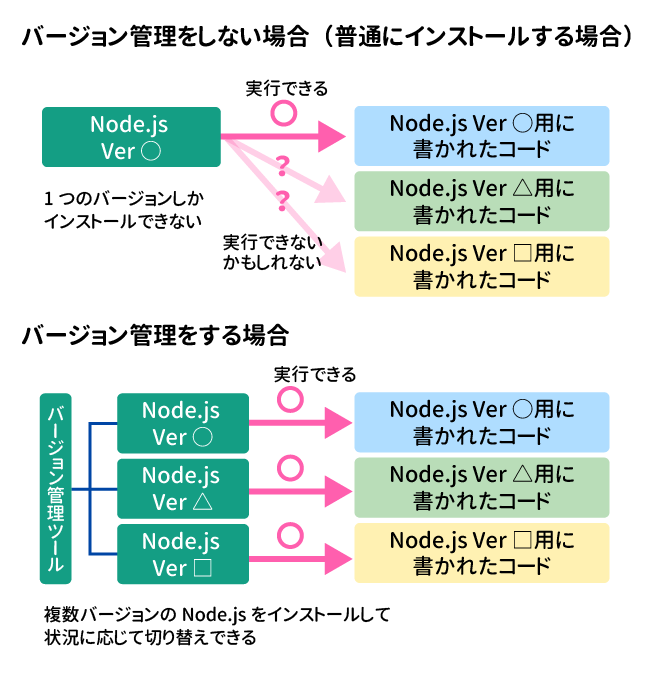 なぜ、 Node.js というプログラミング言語自体にバージョン管理が必要なのでしょうか。