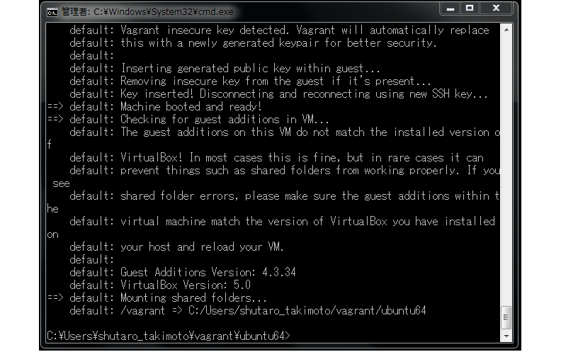 無事、 vagrant up のコマンドまで実行できたでしょうか。