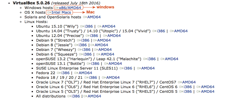 - Mac なら、VirtualBox 5.0.X の OS X hosts Intel Macs