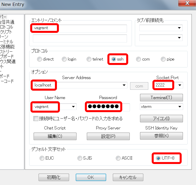 RLogin を起動し、 vagrant と書いてある行をダブルクリックします。